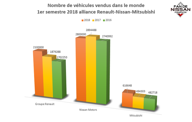 5 538 530, c'est le nombre de véhicules vendus entre Janvier et Juin 2018 par l'alliance Renault-Nissan-Mitsubishi, soit +5.1% par rapport à l'année passée à la même période ce qui l'a laisse au 1er rang des constructeurs mondiaux ! En revanche, pour la première fois, les ventes Nissan baissent.